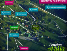 Chcete prožít školičku v přírodě tak úžasně, jako byste byli na venkově u babičky? Pak určitě volte rodinný penzion Mája, který se nachází na Benecku, ve "vzdušných lázních" Krkonoš. Zdejší skvělá pohostinnost vás tu doslova okouzlí. Na jaře, v létě a na podzim bude dětem při procházkách dělat společnost populární "Lufťák" a v zimě má penzion Mája velikou výhodu hlavně v tom, že hned za ním se nachází dětský vlek, vhodný pro pohodlné seznámení se zimními sporty i pro ty nejmenší děti. Pro zdatnější lyžaře či snowboardisty je určen zdejší ski areál se sedačkovou lanovkou, který se od penzionu nachází 200 m. Přijeďte se tedy "vyluftovat" na Benecko!