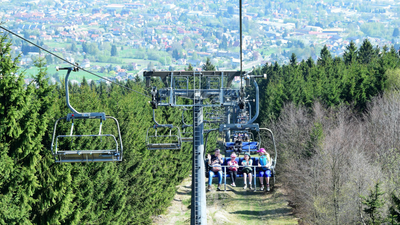 Poznejte krásu samotného symbolu Libereckého kraje a zdejší krajiny. Skiareál Ještěd se nachází přímo pod slavným vysílačem a je ideálním výchozím bodem pro váš výlet s dětmi. Sedačková lanovka Skalka vás bezpečně vyveze během pár minut na ještědský hřeben. Od horní stanice lanovky Skalka se dostanete pohodovou procházkou k vysílači na Ještědu. Cesta je v mapy.cz značena jako "Hřebenová cesta" nebo v naší mapě jako trasa č. 4. a trvá cca 30 minut vycházkovou rychlostí, převýšení je pouze 100 metrů. Užijte si poklidnou jízdu na čerstvém vzduchu a překrásné výhledy do krajiny.